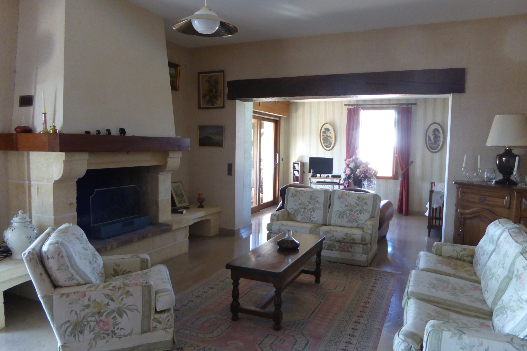 Beaucoup de charme pour cette spacieuse maison avec une partie en pierre implantée en situation dominante comprenant :