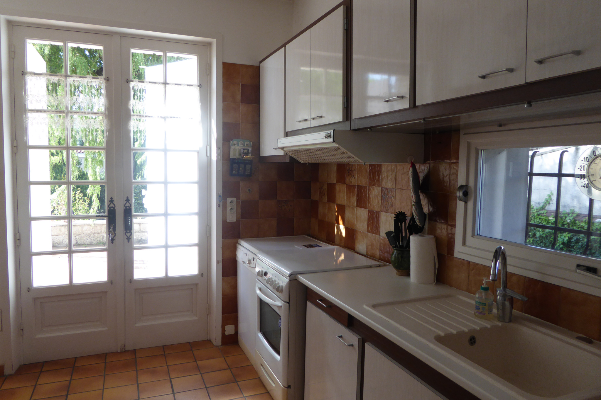 Au RDC : vaste séjour salon avec cheminée donnant sur terrasse, cuisine équipée donnant sur terrasse coin repas avec cheminée, 3 chambres salle de bains.