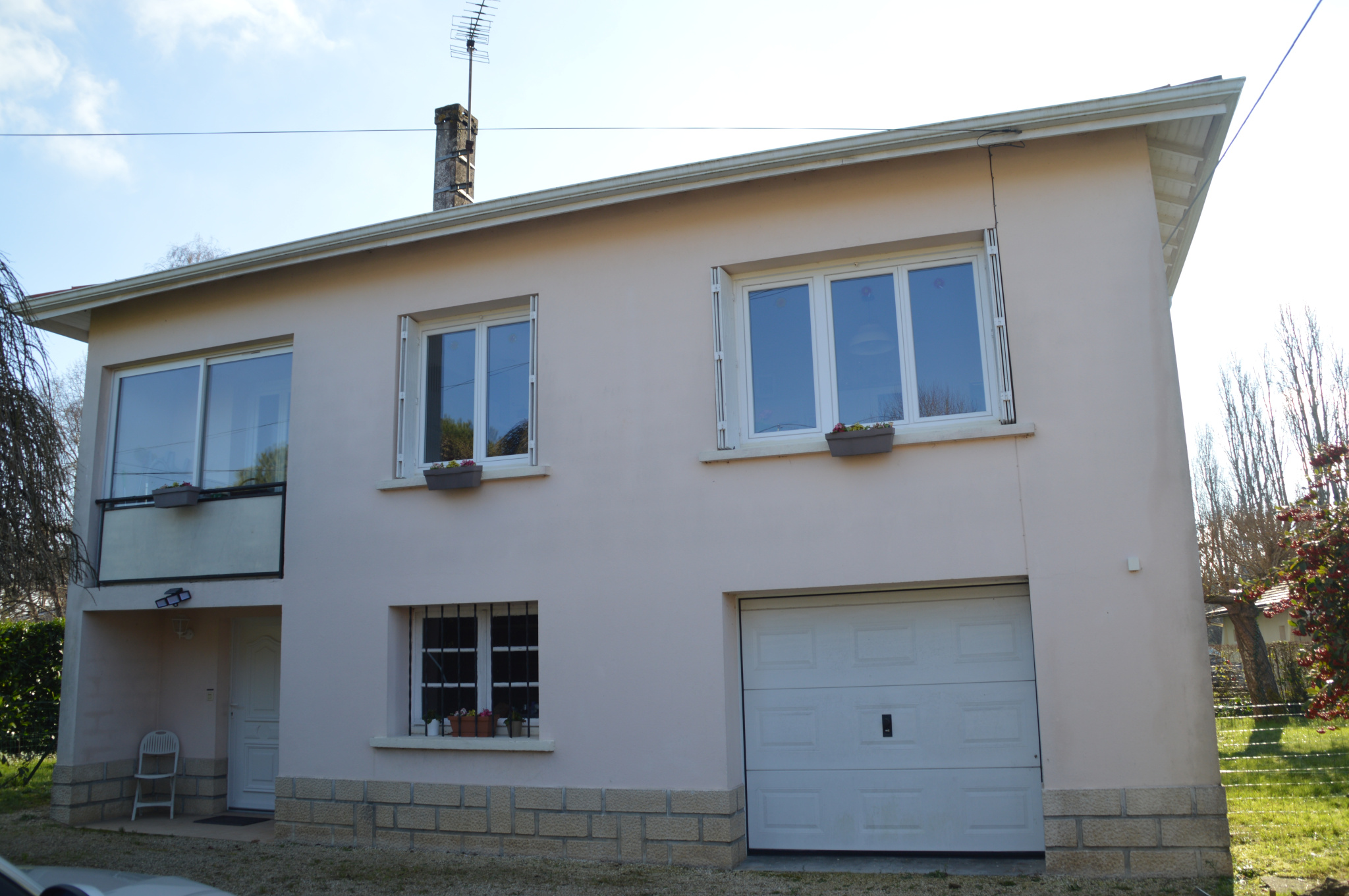 RDC : entrée garage. Au 1er : cuisine aménagée donnant sur un petit balcon fermé, séjour, 3 chambres, salle d'eau.
