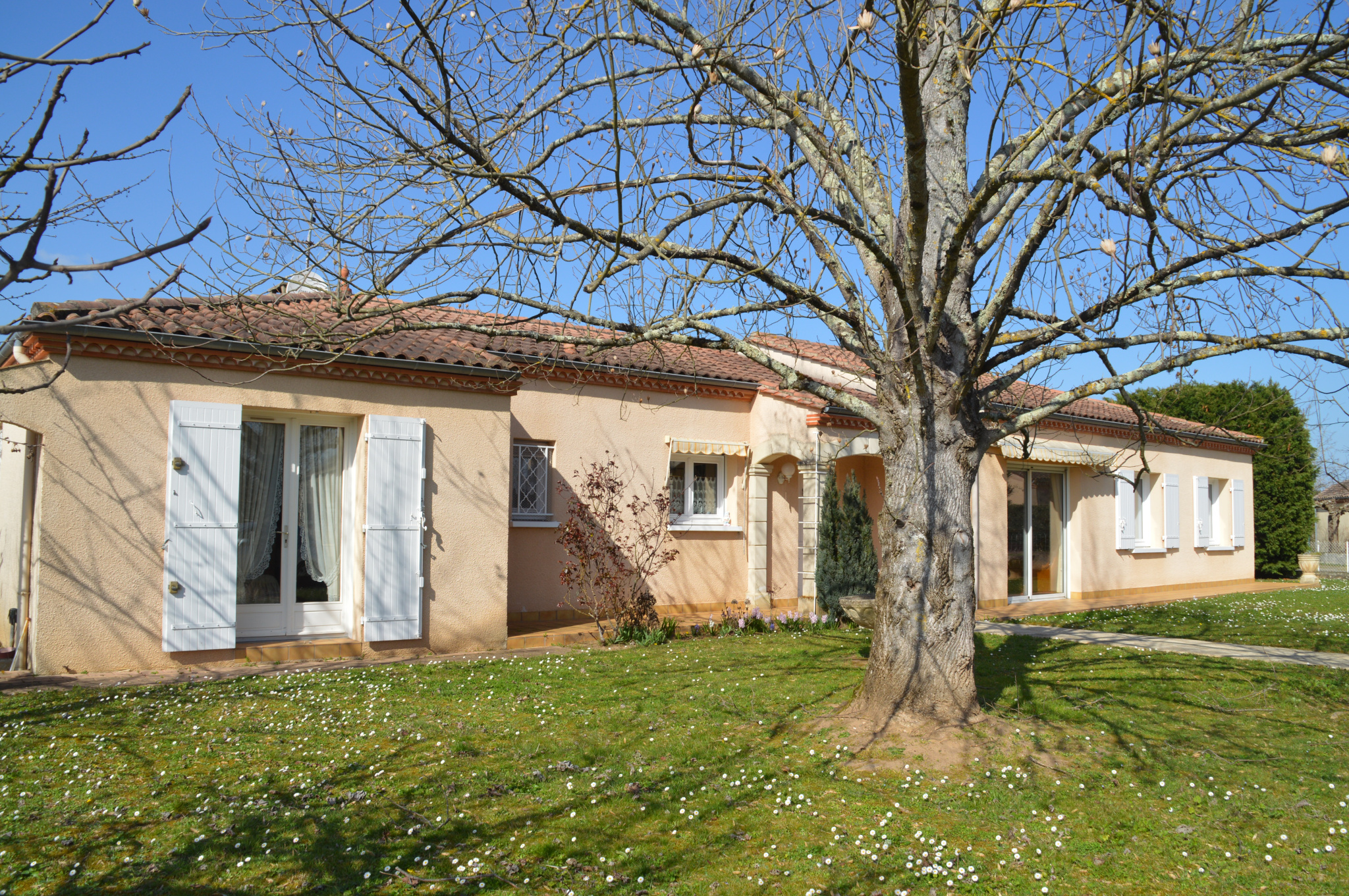 Très agréable pavillon de plain pied spacieux et lumineux situé dans un quartier résidentiel sur la commune de Bias comprenant : entrée, beau séjour salon de 30 m2 env. avec baie vitrée ouvrant sur une terrasse, cuisine équipée ouvrant sur une véranda, 4 chambres dont une suite partentale avec salle d'eau, salle de bains, cellier.
