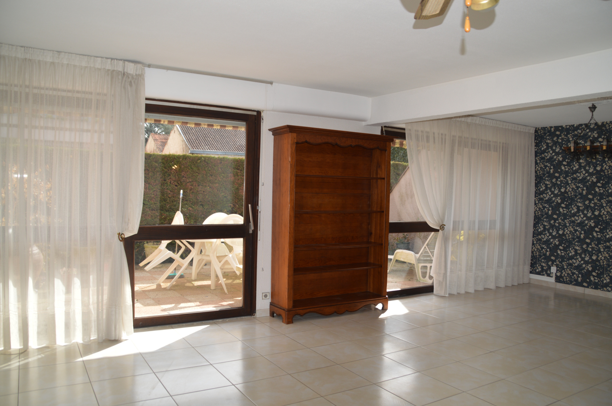 entrée avec placards cuisine équipée avec passe-plat grand séjour salon de 30 m2 ouvrant sur la terrasse 2 chambres avec placards salle d'eau cellier